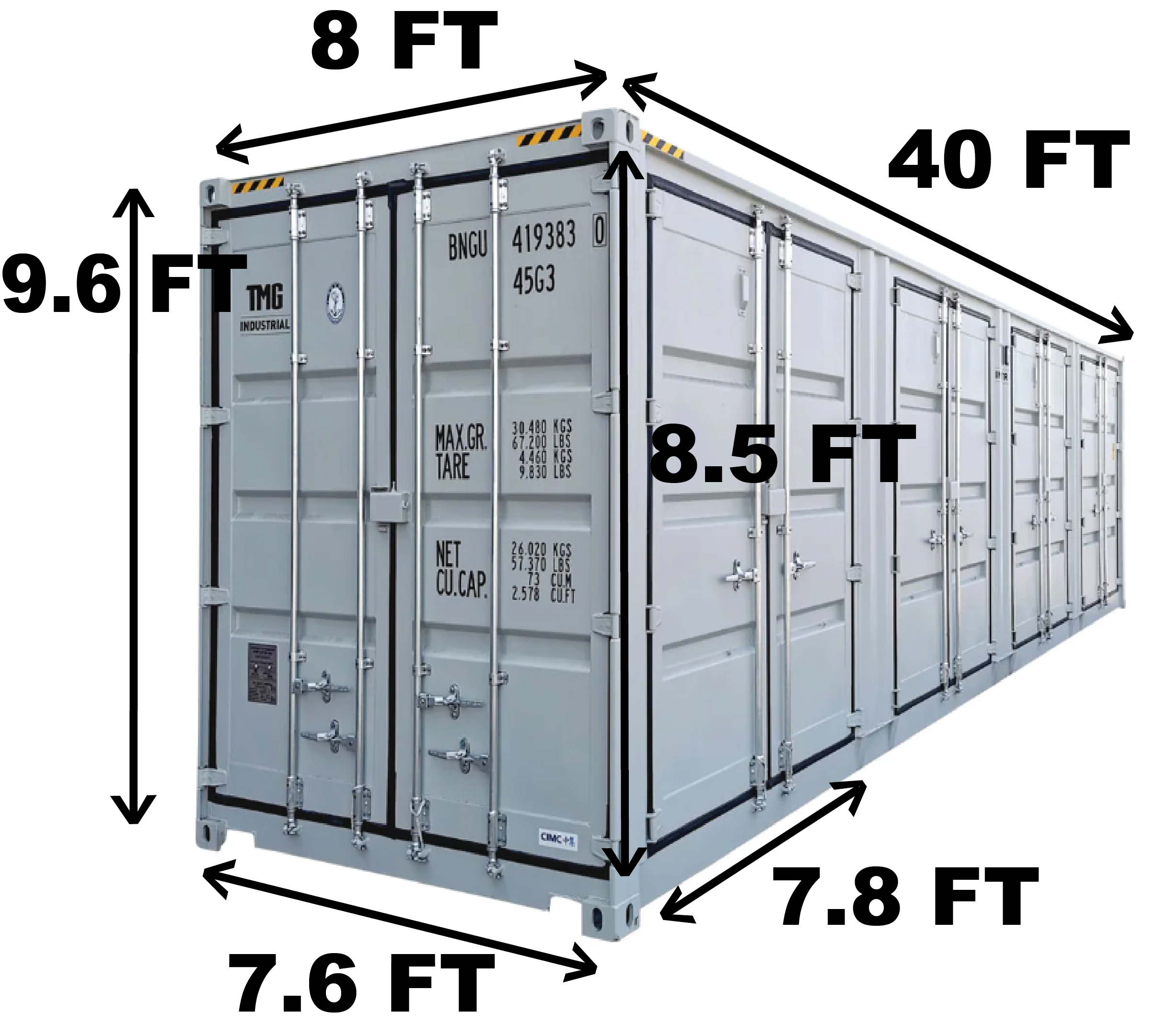 A 40-foot high-cube container with four side open doors provides unparalleled access and flexibility. While the four doors make loading and unloading from any side effortless. Its robust construction ensures lasting durability and security.