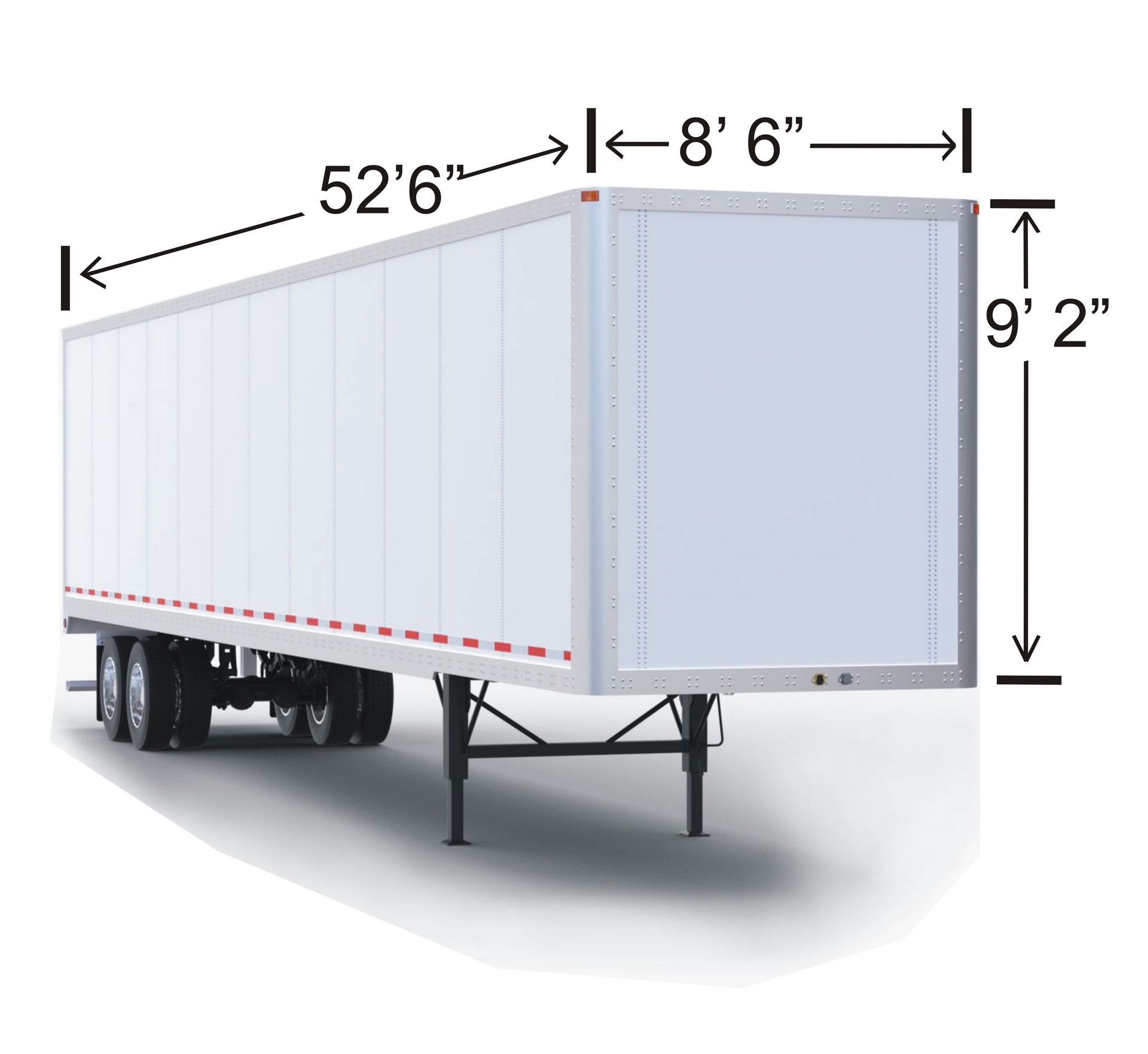 Interior: 52′6″ L x 8'6″ W x 9'2" H